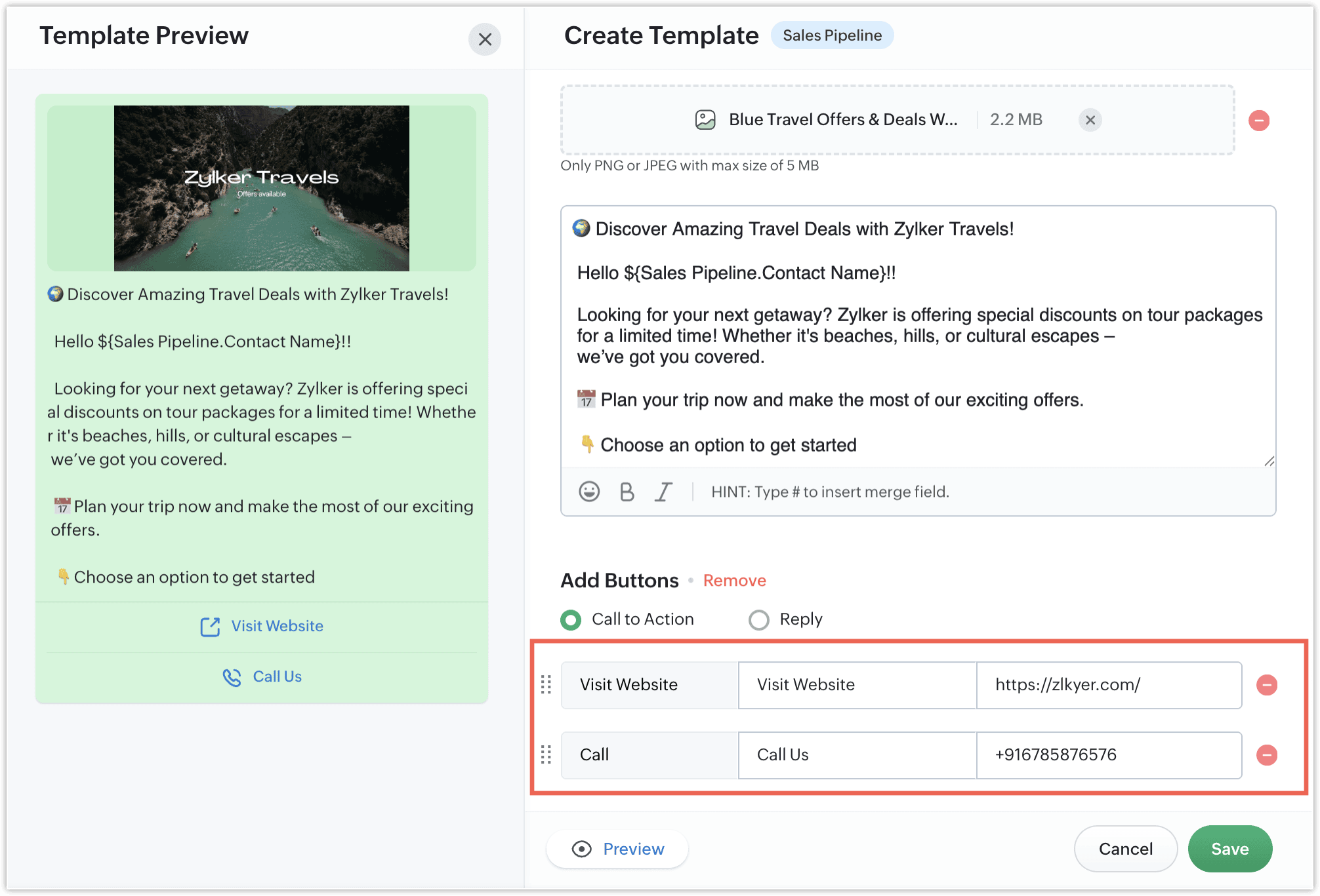Templates are a great way to avoid retyping the same messages over and over. Until now, Bigin has supported only plain-text templates. With this update, you can design more engaging templates by adding: