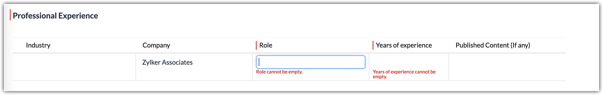 For example, if you want to collect the professional experience of an applicant before onboarding them to an executive course, you can mark the subform as required, collect the details, and save the record to process it further.