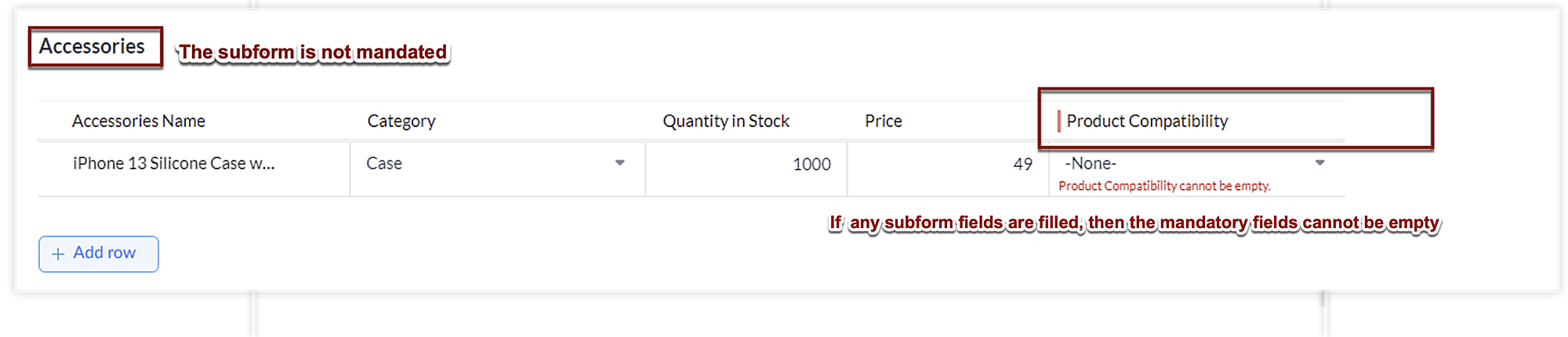 For those organizations, who have set up mandatory fields in their subforms until now, the whole subform will be marked as required by default, as this is how the behavior is in the current web platform. Upon release of this update, in order to avoid sudden behavioral change in mobile and API platforms, we will provide a buffer time of 15 days for users to decide and update the desired behavior. After the buffer time, the updated property will be synchronized across web, mobile, and API platforms.