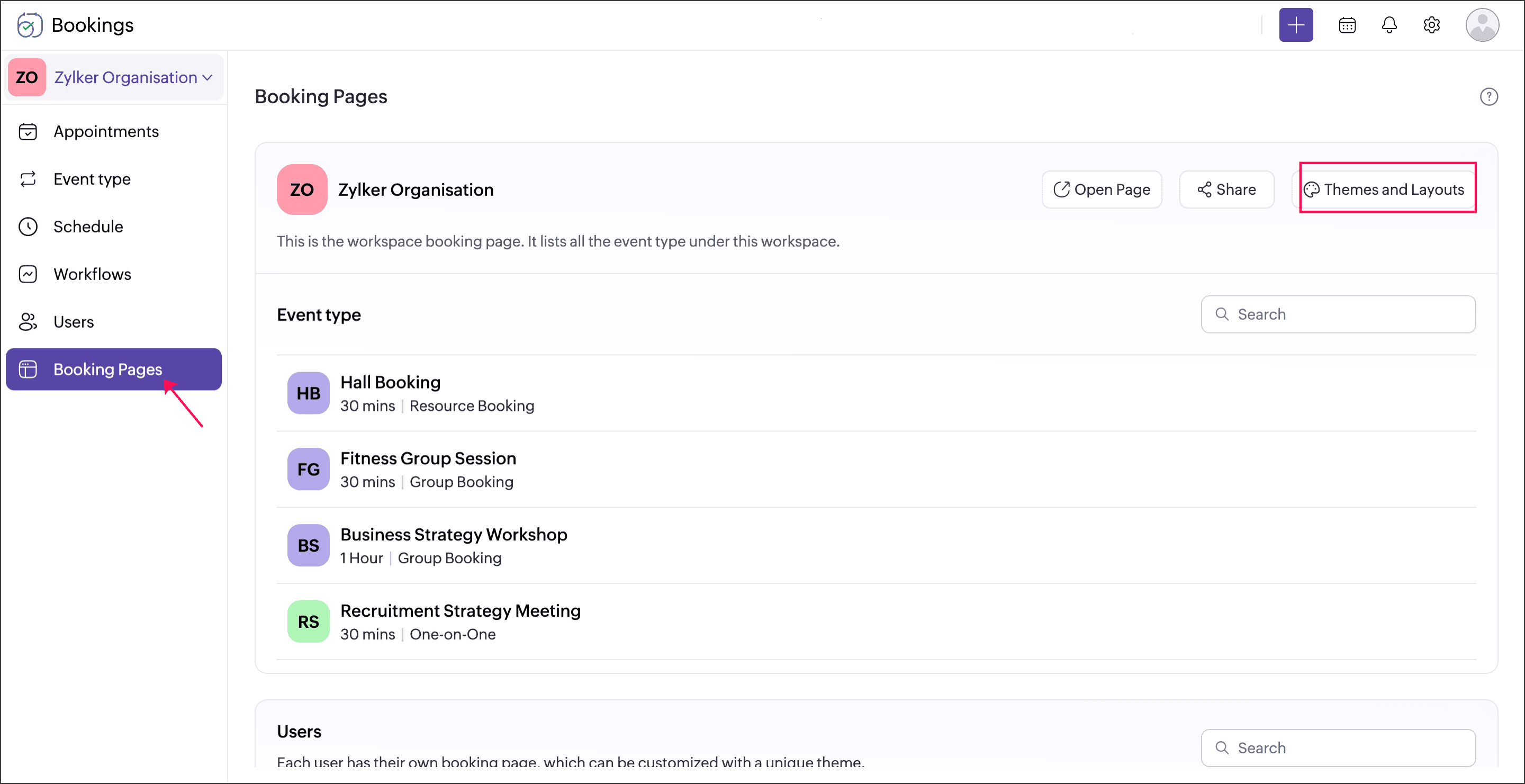 Go to Booking Pages → Choose Themes and Layouts.