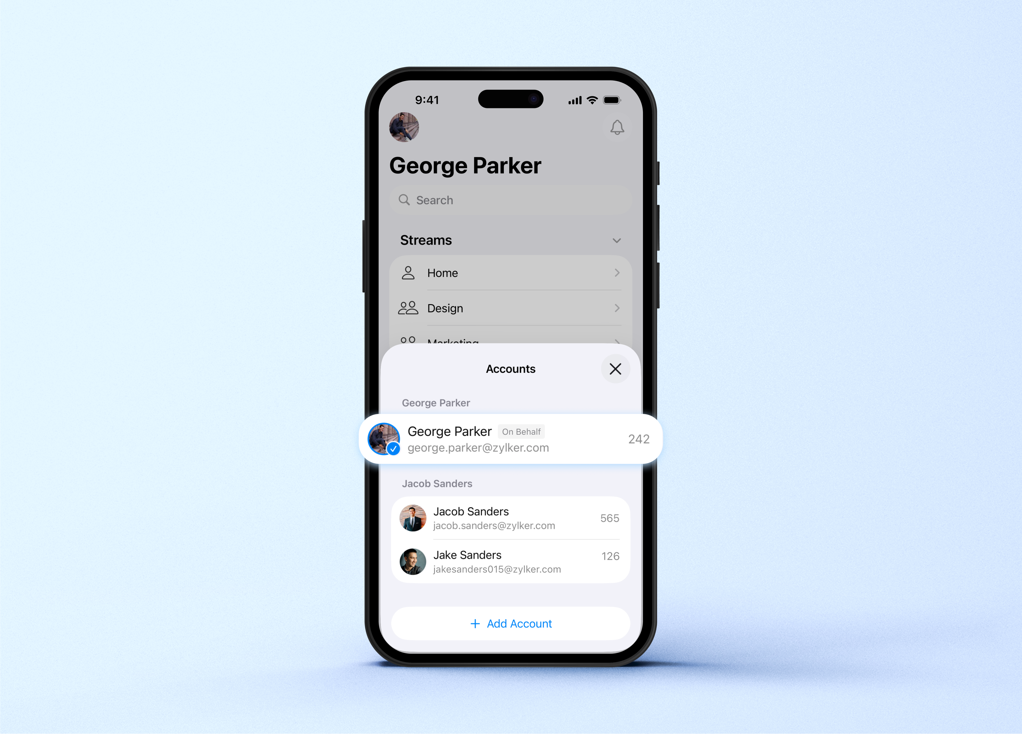 Teraz możesz uzyskać dostęp do skrzynek pocztowych delegowanych bezpośrednio z aplikacji Zoho Mail na iOS. Aby otworzyć skrzynkę pocztową delegowaną, wykonaj następujące czynności:
