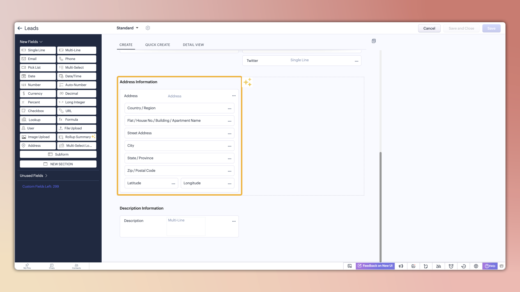Nowe rejestracje: Zdefiniowane przez system pola adresowe pojawią się automatycznie w nowym formacie dla modułów takich jak Leads, Contacts, Accounts, Vendors, Quotes, Invoices, Sales Orders i Purchase Orders. Administratorzy mogą również dodawać dodatkowe niestandardowe pola adresowe.