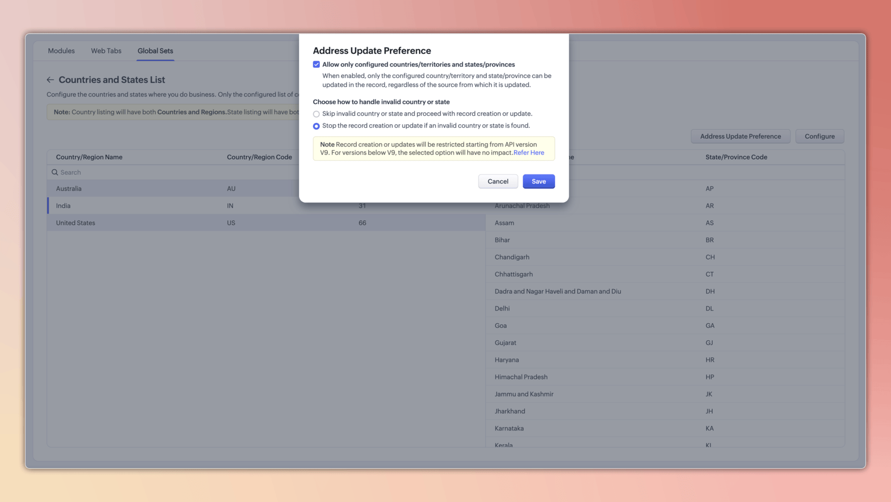 2. Predefiniowane listy globalne dla krajów i stanów