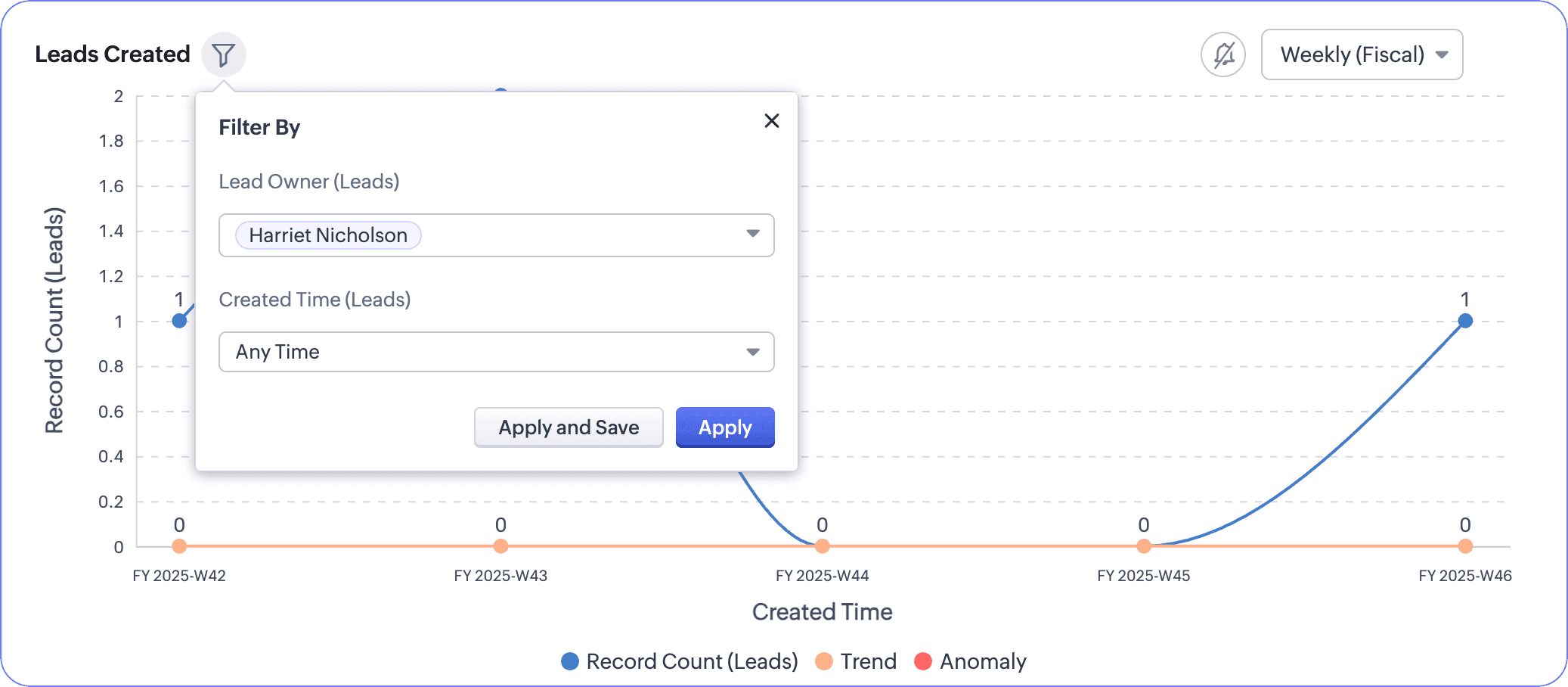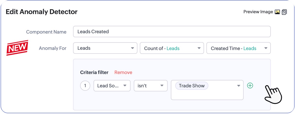 Jeśli Twoja firma bierze udział w targach lub wydarzeniu marketingowym, normalne jest, że w tym okresie nastąpi nagły wzrost liczby potencjalnych klientów. Ponieważ jednak system porównuje to z typowym przepływem potencjalnych klientów, pulpit nawigacyjny może oznaczyć ten wzrost jako anomalię.