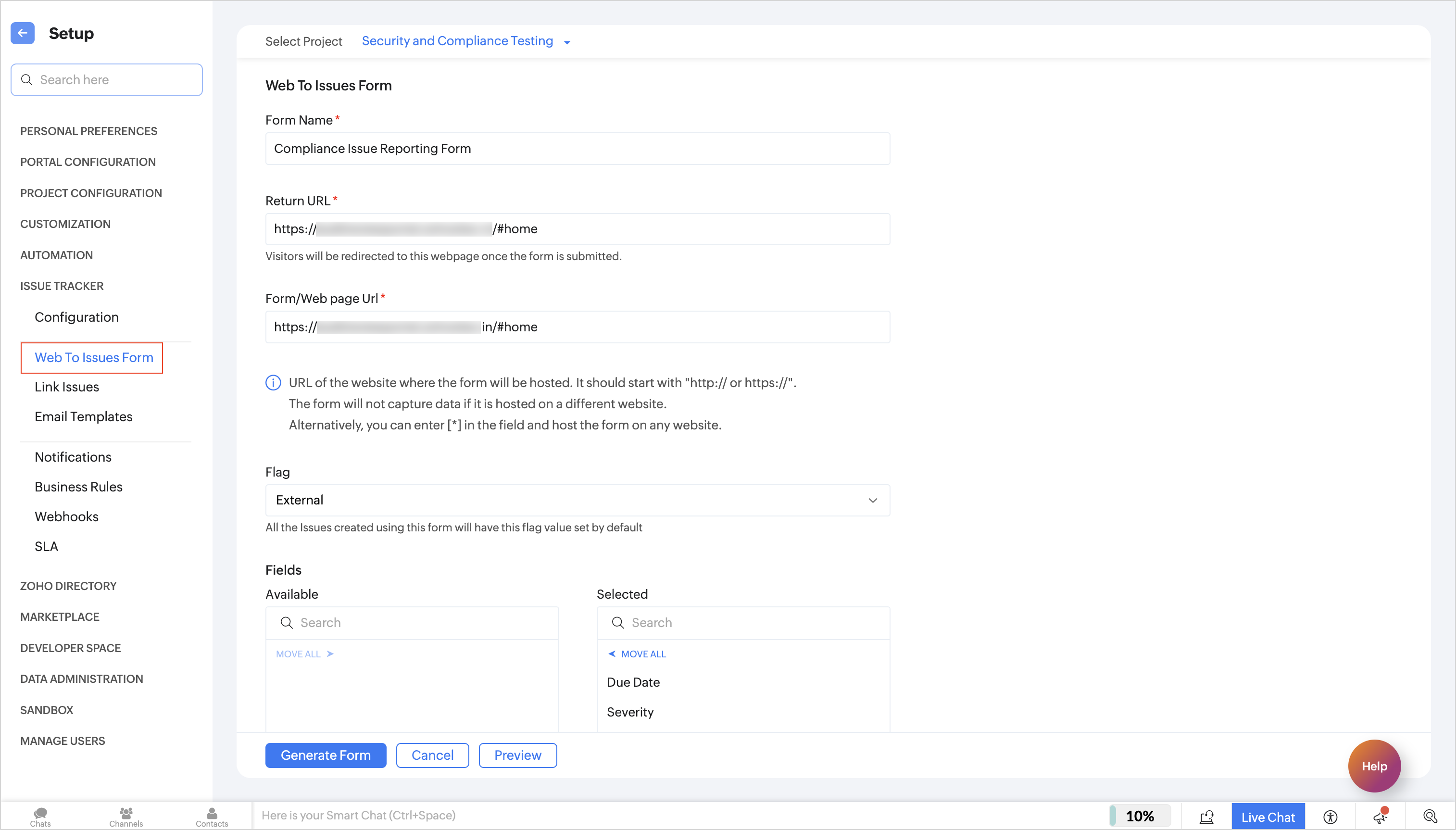 Când cineva trimite formularul, o nouă problemă va fi creată automat în Zoho Projects.
