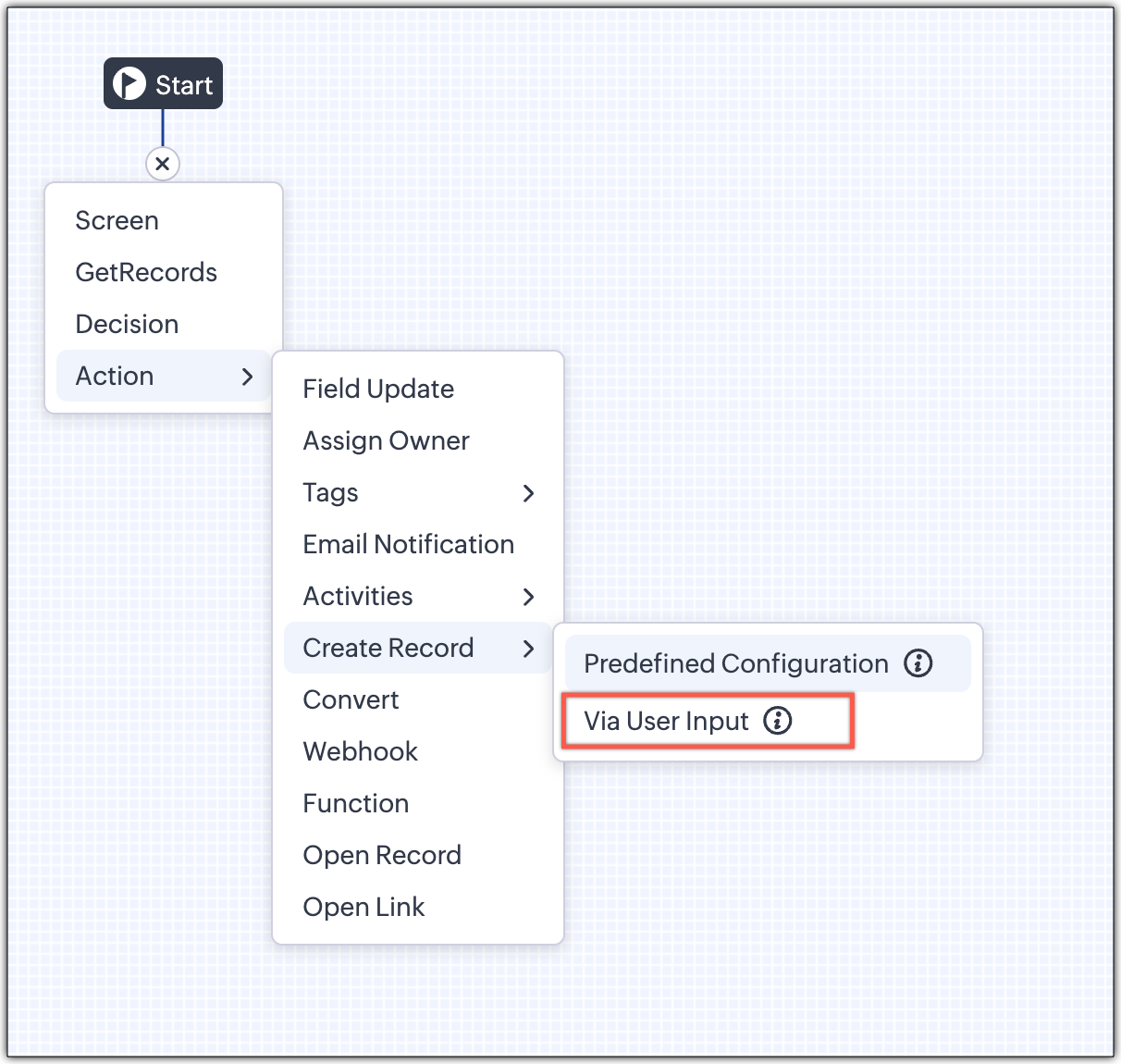 Vyberte Vytvoriť záznam → Cez vstup používateľa